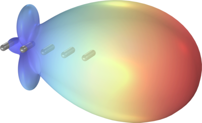 本模型演示如何在“电磁波,边界元”接口中使用边界元法来模拟光学八木-宇田天线。这种天线由点电偶极子驱动,通过背景场实现信号传播。本例计算天线周围的场分布和远场辐射方向图,显示出了高方向性。