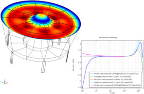 本例是 Brüel & Kjær 4134 电容麦克风模型,几何结构和材料参数均源自实际麦克风,将建模得出的灵敏度级别与实际麦克风测试结果进行了比较,结果表明两者非常一致,还确定了膜变形、压力、速度和电场。