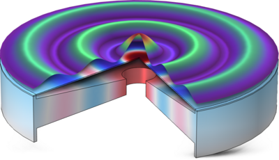 本例是具有简单轴对称几何结构的电容麦克风的模型,旨在精确描述这种麦克风的物理工作原理。电容麦克风在进行精确的声学测量时被认为是质量最高的麦克风,在录音时被认为具有高保真再现属性。这种机电声换能器的工作原理是将薄膜(隔膜)的机械变形转换成交流电压信号。