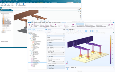 “母线板焦耳热效应”教学案例演示如何在 Solid Edge 和 COMSOL 之间同步装配、如何修改 COMSOL 中的几何结构,以及如何运行几何参数化扫描。