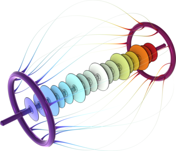 本例演示如何使用静电 接口来计算典型高压绝缘体的表面电场。结果表明,通过安装均压环,可以大幅减小表面电场的不均匀性和最大值。这样,高压绝缘体便能承受较高的过电压。