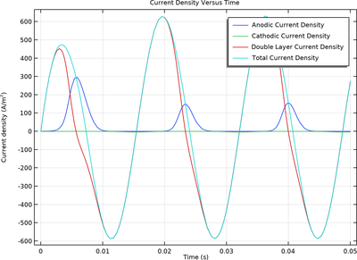 本例介绍的数值模型首先使用稳态分析评估直流 (DC) 外加电势对腐蚀的影响,接着使用瞬态分析评估交流电对腐蚀的影响。