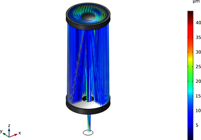 格里高利-马克苏托夫望远镜是一种简单的折反射望远镜,由一个球面校正透镜和一个球面主镜组成。在本例中,校正透镜和主镜分别由“射线光学”零件库中的“球面透镜(三维)”和“球面镜(三维)”零件构成。