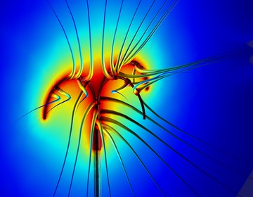 从健康组织中切除癌性肿瘤的一种方法是将恶性组织加热到杀死癌细胞的临界温度。本例通过插入通电的四臂式电探针来实现局部加热,这种情况下,会在“电流”接口中使用电场方程,并且本例将这些方程耦合到生物热方程,生物热方程模拟组织中的温度场。电场产生的热源也称为电阻加热或焦耳热。
