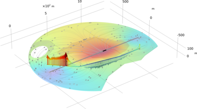 本例使用“阴极保护”接口的“边电极”节点对不同列车位置的管道处的杂散电流进行建模仿真,其中铁路和管道周围的三维域具有不同的土壤电导率。此外,还研究了土壤电导率和管道位置变化对系统的影响。