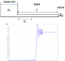 当管网中的阀快速关闭时,会产生水力瞬变,称为水锤。在极端情况下,水力瞬变的传播会导致由超压引起的管道系统故障。这是一个简单的验证管道系统的模型,由蓄水池、管道和阀组成。模型中为瞬时关闭阀门。
