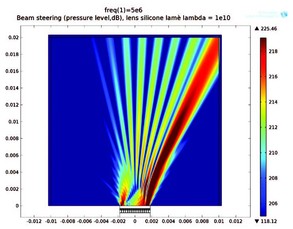 COMSOL 模型显示了硅透镜允许对超声束进行导向
